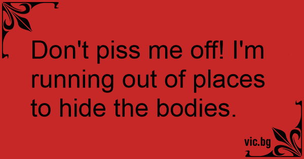 Don't рiss me off! I'm running out of places to hide the bodies.