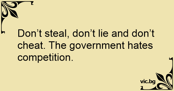 Don’t steal, don’t lie and don’t cheat. The government hates competition.
