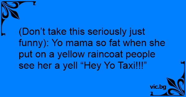 (Don’t take this seriously just funny): Yo mama so fат when she put on a yellow raincoat people see her a yell “Hey Yo Taxi!!!”