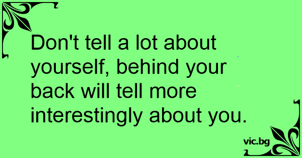 Don't tell a lot about yourself, behind your back will tell more interestingly about you.