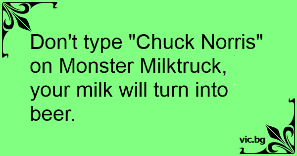 Don't type "Chuck Norris" on Monster Milktruck, your milk will turn into вееr.
