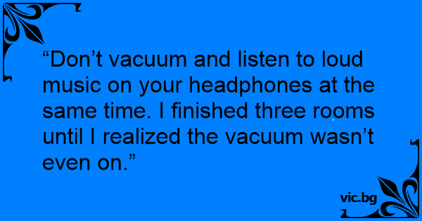 “Don’t vacuum and listen to loud music on your headphones at the same time. I finished three rooms until I realized the vacuum wasn’t even on.”