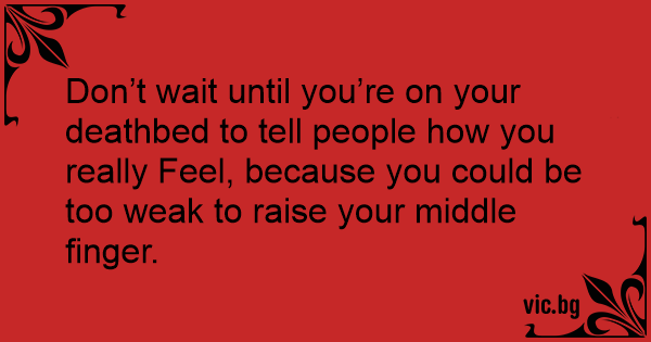 Don’t wait until you’re on your deathbed to tell people how you really Feel, because you could be too weak to raise your middle finger.