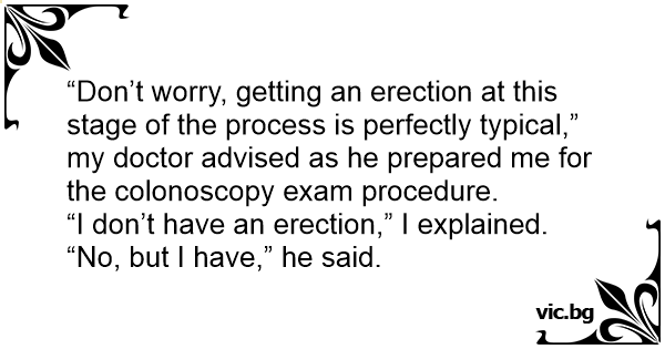 During my prostate exam, the doctor told me it was completely normal to get an erection. When I pointed out I didn't have one he said he wasn't talking about me.