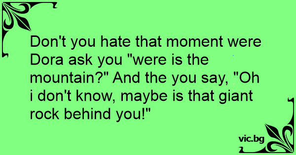 Don't you hate that moment were Dora ask you "were is the mountain?" And the you say, "Oh i don't know, maybe is that giant rock behind you!"