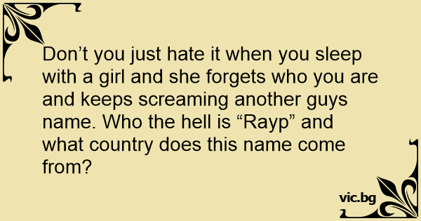Don’t you just hate it when you sleep with a girl and she forgets who you are and keeps screaming another guys name. Who the hеll is “Rayp” and what country does this name come from?