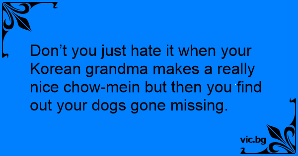 Don’t you just hate it when your Korean grandma makes a really nice chow-mein but then you find out your dogs gone missing.