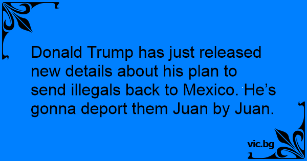 Donald Trump has just released new details about his plan to send illegals back to Mexico. He’s gonna deport them Juan by Juan.