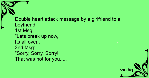 Double heart attack message by a girlfriend to a boyfriend: