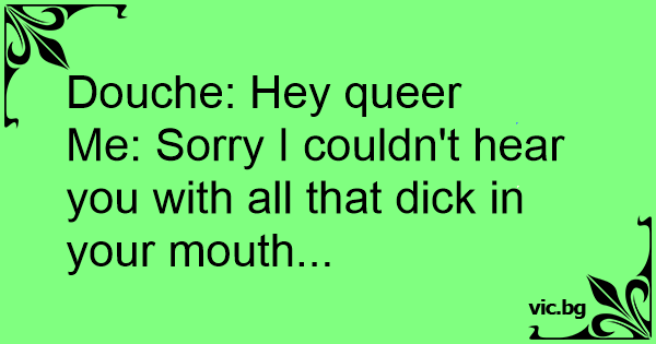 Dоuсhе: Hey queer<br />Me: Sorry I couldn't hear you with all that diск in your mouth...