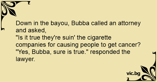 "Is it true they're suin' the cigarette companies for causing people to get cancer?