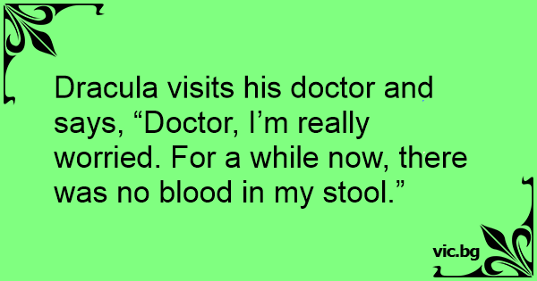 Dracula visits his doctor and says, “Doctor, I’m really worried. For a while now, there was no blood in my stool.”