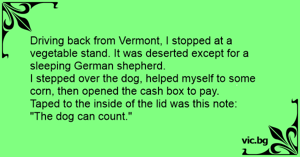 I stepped over the dog, helped myself to some corn, then opened the cash box to pay.