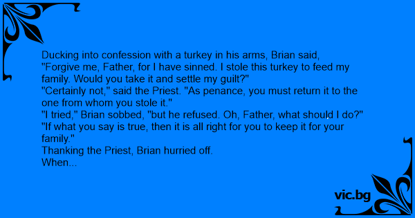 Ducking into confession with a turkey in his arms, Brian said,
