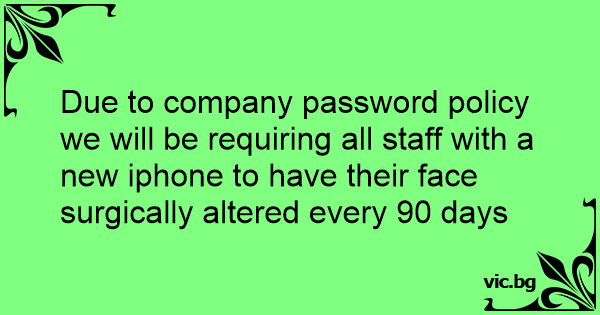 Due to company password policy we will be requiring all staff with a new iphone to have their face surgically altered every 90 days