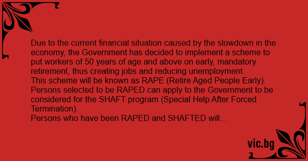 This scheme will be known as RАРЕ (Retire Aged People Early).