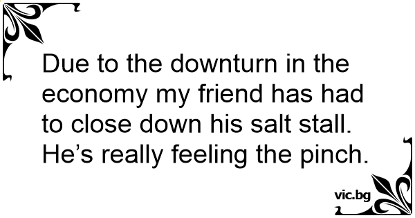 Due to the downturn in the economy my friend has had to close down his salt stall. He’s really feeling the pinch.