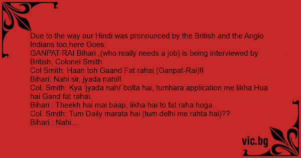 Due to the way our Hindi was pronounced by the British and the Anglo Indians too,here Goes: