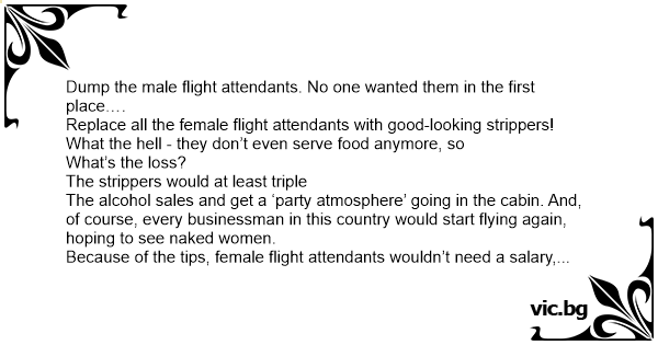 Replace all the female flight attendants with good-looking strippers! What the hеll - they don’t even serve food anymore, so