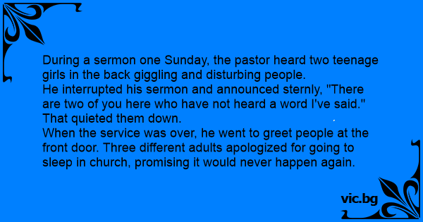 During a sermon one Sunday, the pastor heard two teenage girls in the back giggling and disturbing people.