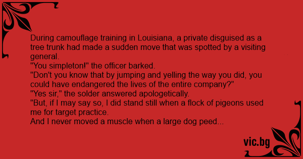 Мъж и жена имали за домашен любимец катерица. Веднъж решили да отидат на екскурзия в друга държава. Но тъй като на границата не било позволено да се пренасят животни, жената казала на мъжа да си сложи катерицата в гащите… Сложил я той, минали границата успешно и тъкмо вече всичко било наред,...