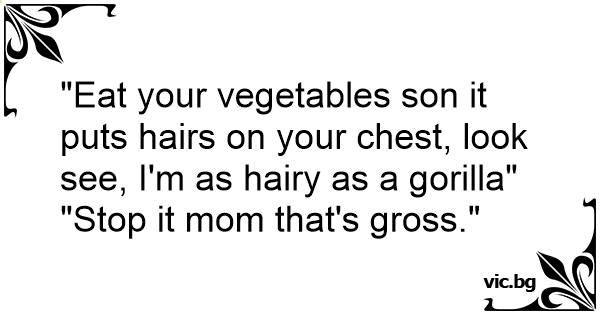 "Eat your vegetables son it puts hairs on your chest, look see, I'm as hairy as a gorilla"