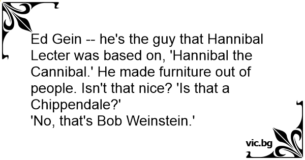 Ed Gein -- he's the guy that Hannibal Lecter was based on, 'Hannibal the Cannibal.' He made furniture out of people. Isn't that nice? 'Is that a Chippendale?'