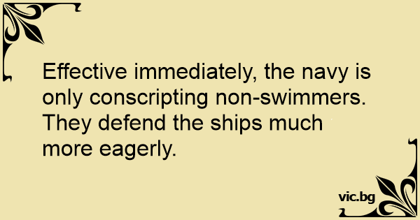 Във флота вече вземат за моряци само хора, които не могат да плуват.