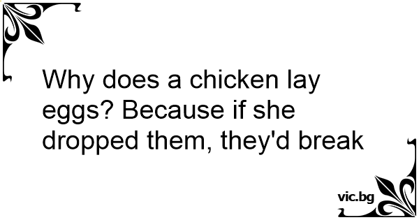 Why does a chicken lay eggs? Because if she dropped them, they'd break