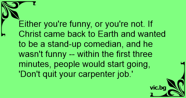 Either you're funny, or you're not. If Сhrisт came back to Earth and wanted to be a stand-up comedian, and he wasn't funny -- within the first three minutes, people would start going, 'Don't quit your carpenter job.'