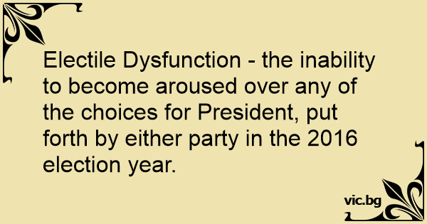 Electile Dysfunction - the inability to become aroused over any of the choices for President, put forth by either party in the 2016 election year.