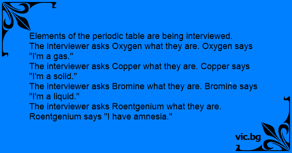 The interviewer asks Roentgenium what they are. Roentgenium says "I have amnesia."