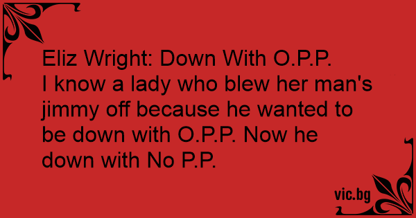 I know a lady who blew her man's jimmy off because he wanted to be down with O.P.P. Now he down with No P.P.