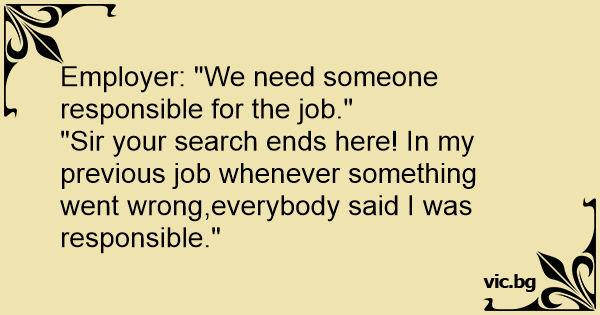 "Sir your search ends here! In my previous job whenever something went wrong,everybody said I was responsible."