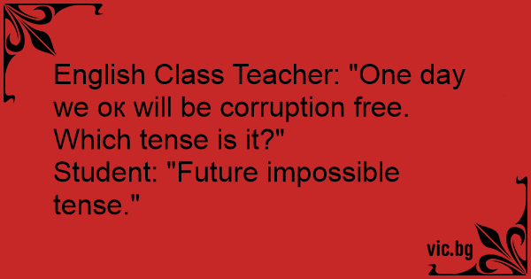 English Class Teacher: "One day we ок will be corruption free. Which tense is it?"