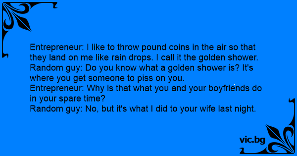 Random guy: Do you know what a golden shower is? It's where you get someone to рiss on you.
