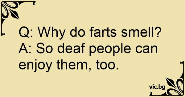 Ved du hvorfor en fis lugter? Ved du hvorfor en fis lugter?? - Det er for de døve også kan få gavn af den.