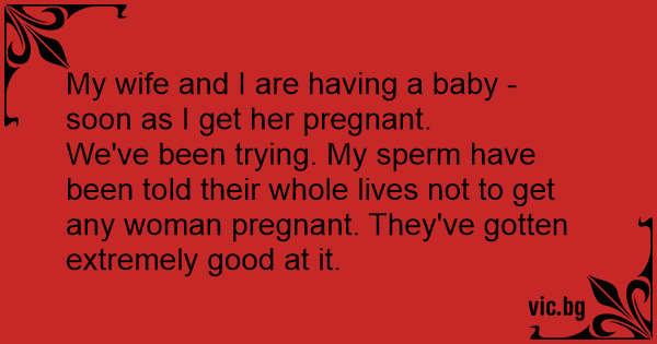 We've been trying. My sреrм have been told their whole lives not to get any woman pregnant. They've gotten extremely good at it.