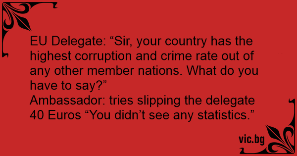 EU Delegate: “Sir, your country has the highest corruption and сriме rate out of any other member nations. What do you have to say?”