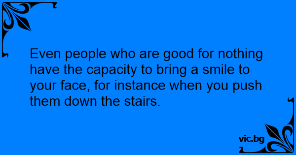 Even people who are good for nothing have the capacity to bring a smile to your face, for instance when you push them down the stairs.