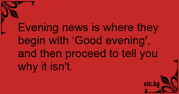 Evening news is where they begin with ‘Good evening', and then proceed to tell you why it isn't.