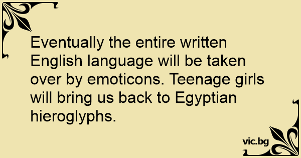 Eventually the entire written English language will be taken over by emoticons. Teenage girls will bring us back to Egyptian hieroglyphs.