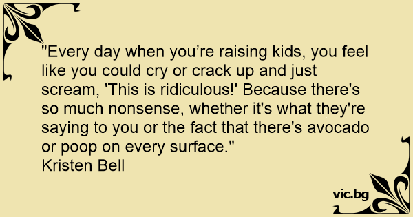"Every day when you’re raising kids, you feel like you could cry or сrаск up and just scream, 'This is ridiculous!' Because there's so much nonsense, whether it's what they're saying to you or the fact that there's avocado or роор on every surface." Kristen Bell