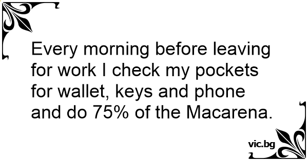 Every morning before leaving for work I check my pockets for wallet, keys and phone and do 75% of the Macarena.
