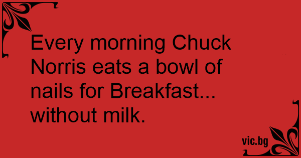 Every morning Chuck Norris eats a bowl of nails for Breakfast... without milk.