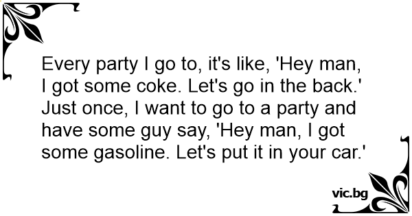 Every party I go to, it's like, 'Hey man, I got some coke. Let's go in the back.' Just once, I want to go to a party and have some guy say, 'Hey man, I got some gasoline. Let's put it in your car.'