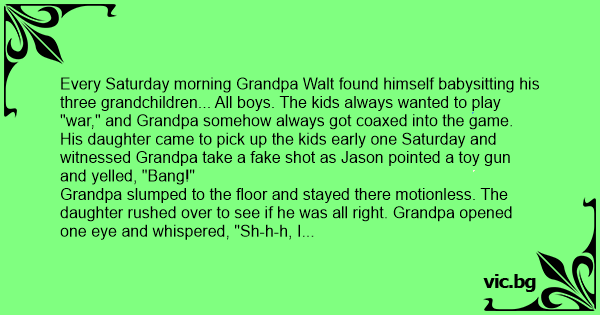 Every Saturday morning Grandpa Walt found himself babysitting his three grandchildren... All boys. The kids always wanted to play "war," and Grandpa somehow always got coaxed into the game.