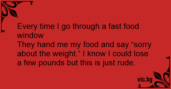 They hand me my food and say “sorry about the weight.” I know I could lose a few pounds but this is just rude.
