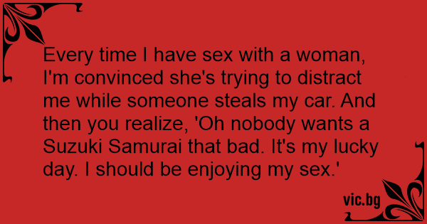 Every time I have sеx with a woman, I'm convinced she's trying to distract me while someone steals my car. And then you realize, 'Oh nobody wants a Suzuki Samurai that bad. It's my lucky day. I should be enjoying my sеx.'