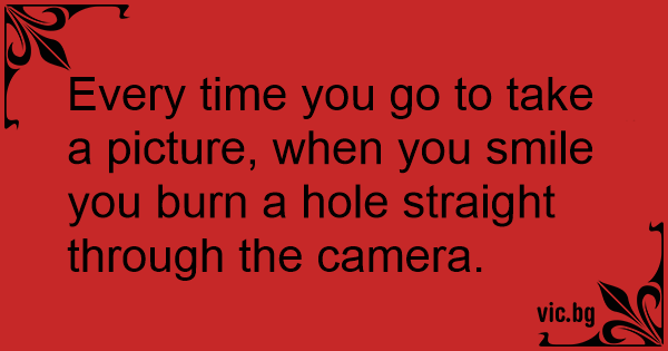Every time you go to take a picture, when you smile you burn a hole straight through the camera.